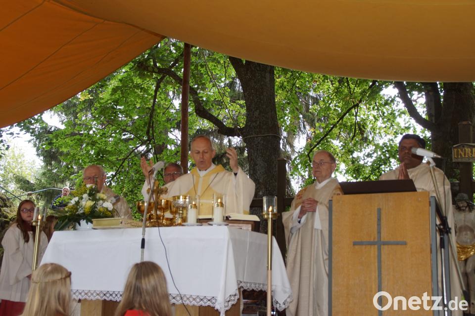 Der Geistliche freute sich über die vielen Wallfahrer, die zu Ehren der Gottesmutter nach Stadlern gekommen waren. Sie alle, unter ihnen Landrat Thomas Ebeling, Staatssekretärin a. D. Marianne Deml, Bürgermeister und Gemeinde- und Kreisräte aus der Region, hätten sich auf dem Weg gemacht, um an der Wallfahrt Kraft zu schöpfen und eines der größten kirchlichen Feste im Grenzland mitzufeiern. Dankesworte richtete der Priester an die Stadlerner für die Vorbereitungen zu diesem Fest und hob das Engagement von Ehrenbürger Michael Koller beim Aufstellen der Sitzbänke am Altar hervor. Mit großer Freude hieß Pfarrer Reitinger Weihbischof Reinhard Pappenberger als Hauptzelebrant und Festprediger willkommen und dankte dem Ruhestandsgeistlichen Martin Särve aus Regensburg für sein Kommen. Der gebürtige Weidinger halte den Festlichkeiten am Frauentag seit Jahren die Treue. Mit am Altar standen bei diesem Gottesdienst Pater Joseph, Urlaubsvertretung des Schönseer Pfarrers Wolfgang Dietz, Diakon Hans Winter, Oberviechtach, und Pastoralreferent Stefan Knott aus Charlottenthal.