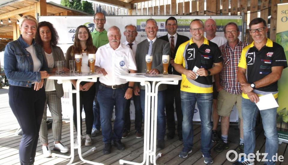 Veranstalter, Sponsoren und Schirmherren trafen sich zur Programmvorstellung am Ufer des Steinberger Sees. "Die Planungen laufen auf Hochtouren", versicherten die Organisatoren Christian Betzlbacher und Dieter Vogl, die auf ein Team von 80 Helfern zurückgreifen können. Die Sprintdistanz geht über 750 Meter Schwimmen im Steinberger See, 24 Kilometer Radfahren im Seengebiet und 5,5 Kilometer Laufen auf dem Seerundweg. Beim Supersprint sind es 300 Meter Schwimmen, 15 Kilometer Radfahren und drei Kilometer Laufen.