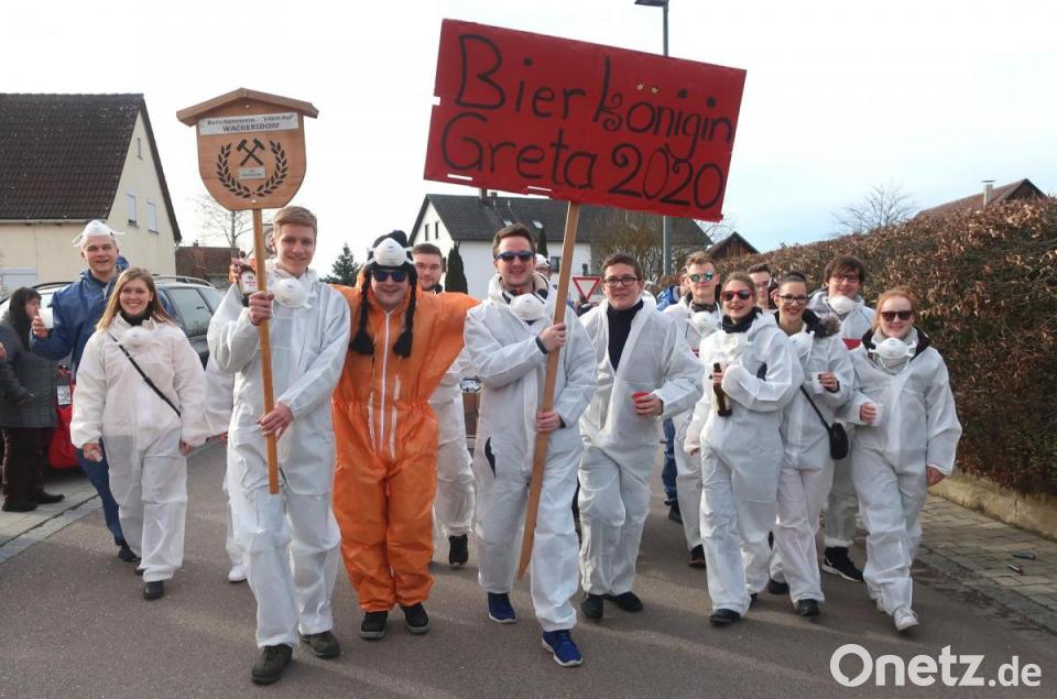 "Schnee warad schee" stand auf dem Schild der Tennis-Damen der DJK Steinberg. Sie schlüpften in ein Schneemann-Kostüm und warfen Tennisbälle in die Menge. Die "Groumdeifl'n", die Schützengesellschaft Auerhahn, "die Schlümpfe der Jugendfeuerwehr Steinberg" und die "Stockenfelser Bierfreunde" machten lautstark auf sich aufmerksam.