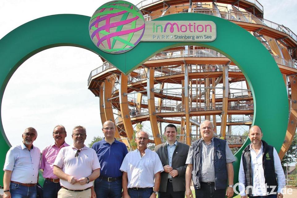 Füracker zeigte sich auf dem sieben Kilometer langen Rundweg immer wieder fasziniert, "was man daraus gemacht hat, nachdem die Braunkohle nicht mehr abgebaut werden konnte". Als fachkundiger Führer stand dem Minister der Steinberger Bürgermeister Harald Bemmerl zur Verfügung. Der wies nicht nur auf die zahlreichen Gäste hin, die vor allem an den Wochenenden oft von weit her kommen. Er deutete auch auf die Vielzahl der Segelboote, die auf dem See kreuzen, und nannte mit der Wasserskilift-Anlage, dem Minigolf-Areal und dem Freizeitpark "Movin' Ground" einige der Angebote, die die Besucher erwarten würden. Füracker erfuhr, dass Mitte der 1980er Jahre die Bayerische Braunkohlenindustrie (BBI) den Abbau einstellt hat und danach die Tagebaugrube "Steinberger See" geflutet wurde. Vorhandenes Abbaugerät wurde gesprengt und liegt heute noch auf dem Grund des Sees. Ebenfalls zurückgeblieben sind zwei kleine bewaldete Inseln, die den See in einen Nord- und einen Südteil trennen.