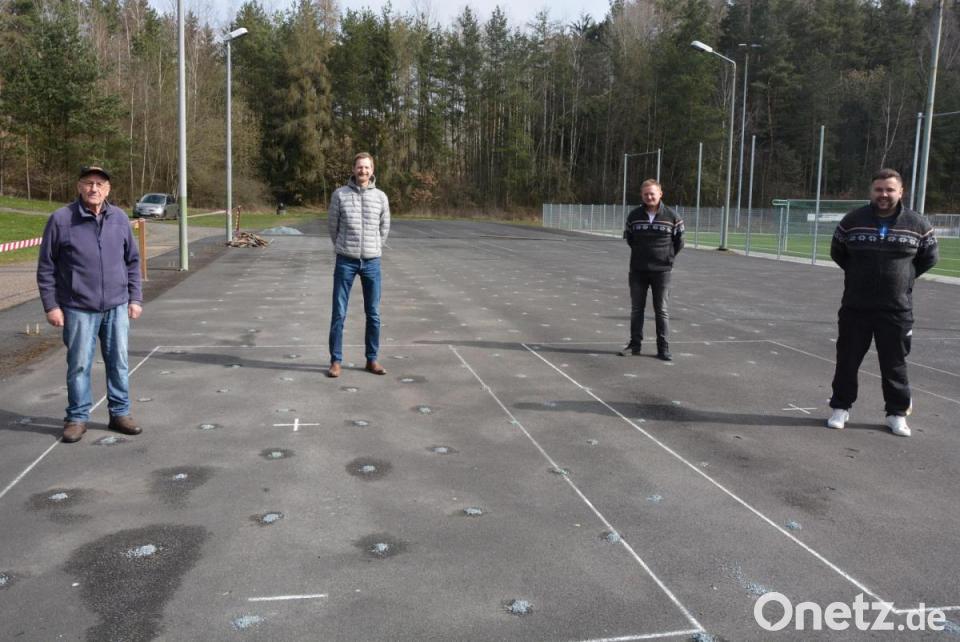 Die Anlage, die direkt neben dem modernen Kunstrasenplatz liegt, wurde bereits 1987 erbaut. Auf einer Fläche von 500 Quadratmetern verteilen sich vier Bahnen. Ein spezieller Pflasterbelag soll den in die Jahre gekommenen Asphaltbelag ersetzen. Dazu wurden bereits rund 1000 30 Zentimeter tiefe Löcher in den Asphalt gebohrt, so dass bei schlechter Witterung das Wasser abfließen und versickern kann. Für diese Arbeiten in Eigenleistung hat die Sparte etwa 100 Stunden geleistet. Eine Spezialfirma aus Schrobenhausen wird demnächst Splitt aufbringen, darauf folgt der neue Pflasterbelag.