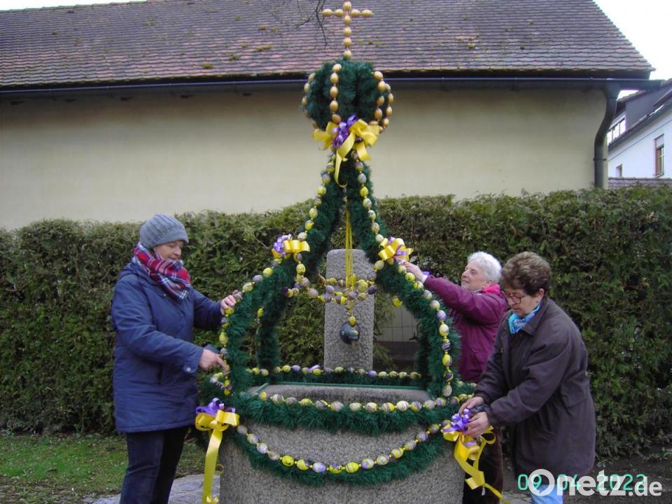 Nach zwei Jahren Auszeit schmückt wieder eine bunte Osterkrone seit Palmsonntag den Brunnen vor der Salvatorkirche in Störnstein aufgestellt von der Frauen Union Störnstein. Die Osterkrone wird auf dem Hof von Anni Kraus hergerichtet und dann zum Brunnen transportiert. Dort wird die Krone noch ausgeschmückt. Im Jahr 1991 wurde die Osterkrone zum ersten Mal geschmückt und aufgestellt. Das bunte Werk schmückt drei bis vier Wochen den Kirchplatz der St. Salvatorkirche.
