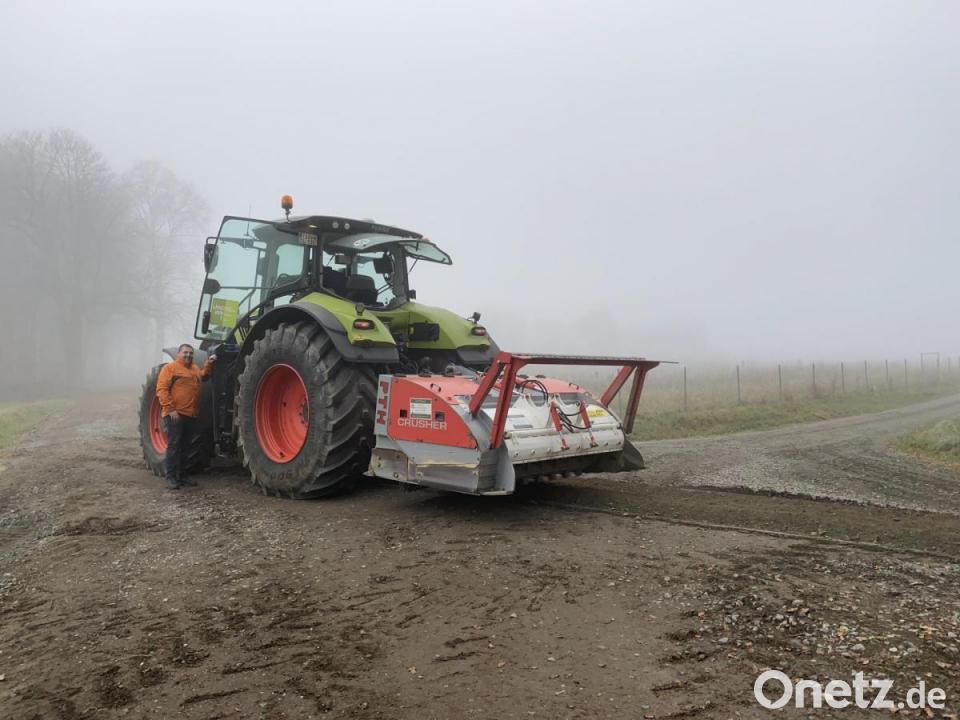 Mit sechs Kilometer pro Stunde bewegt sich der Traktor mit dem angehängten Crusher über den Weg und zermahlt dabei die größeren Steine. Die Gemeinde lässt die beiden Wege für etwa 6500 Euro sanieren. Das erledigt der landwirtschaftliche Lohnunternehmer Schedl aus Schwarzenbach bei Bärnau mit seinem Crusher, der wie eine Eiswürfel-Maschine die ungewünschten Steine beim Darüberfahren zermahlt und die zerkleinerten Steine als Baumaterial für den Weg zurücklässt. Denn die beiden Wege sollen wieder die Bogenform bekommen, die das Niederschlagswasser ablaufen lässt, wie Bürgermeister Markus Ludwig erklärt. Zuletzt glichen die beiden Wege eher Rinnen, in denen sich das Wasser sammeln konnte. Und sie wurden von Regenguss zu Regenguss weiter ausgeschwemmt, wie Ludwig sagt. In Kürze sollen die beiden Wege aber wieder vollkommen gefahrlos nutzbar sein.