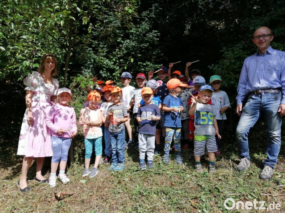 Kräuterführer Andreas Träger und Ramona Rieger übernahmen die außergewöhnliche Führung auf dem Schlossberg in Störnstein. Die 19 Kinder wurden zusätzlich durch das Personal des Kindergartens begleitet. Anhand einer selbstverfassten Geschichte rund um eine kleine Hexe und deren Ausflug in das „magische Kräuter- und Pflanzenreich“ wurde den Kleinen Wissenswertes über verschiedene Pflanzen auf dem Schlossberg nähergebracht.