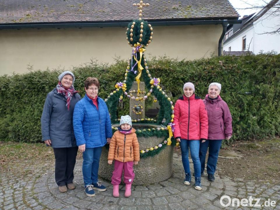 Ein bunter Osterbrunnen schmückt seit Palmsamstag den Platz vor der St. Salvatorkirche in Störnstein. Dafür haben die fleißigen Helferinnen der örtlichen Frauen-Union gesorgt, wie aus einer Mitteilung hervorgeht. Zuvor wurde die Krone von der Vorstandschaft in den Räumen von Anni Kraus mit Girlanden umwickelt und mit Eiern bestückt. Danach wurde die Osterkrone zum Brunnen transportiert und aufgesetzt. Hier wurde sie dann noch mit etlichen Schleifen fertig geschmückt. Den Abschluss der Arbeiten an der Krone bildete ein Aufsatz mit goldgelben Eiern und ein Kreuz.