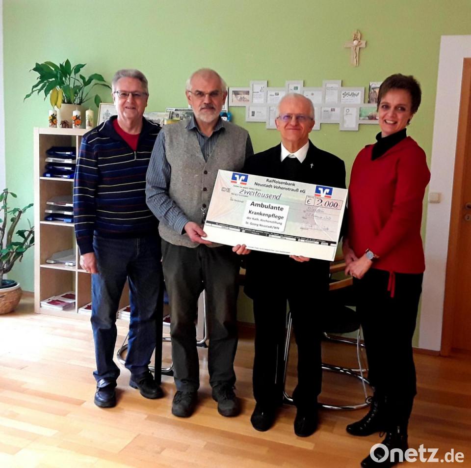 Pfarrer Josef Häring und Kirchenpfleger Josef Schieder übergaben 2000 Euro an die Pflegedienstleiterin Annette Scherb und Geschäftsführer Rudolf Kneidl.