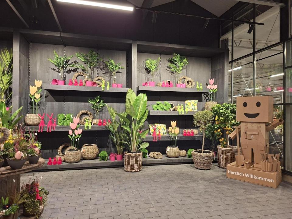 Anschließend lud die Familie Steinhilber die Gäste in das neue Café des Gartenmarkts ein. Die Besucher konnten sich vom geschmackvollen Interieur und dem vielfältigen Angebot überzeugen. Im Café bedienten sie sich an einem reichhaltigen Buffet und einer großen Auswahl an Getränken. Auch „Betty Blüh“, das Maskottchen der Marke „da blüh ich auf“, drehte ihre Runden. Zu den Partnermärkten gehört auch die Gärtnerei Steinhilber.