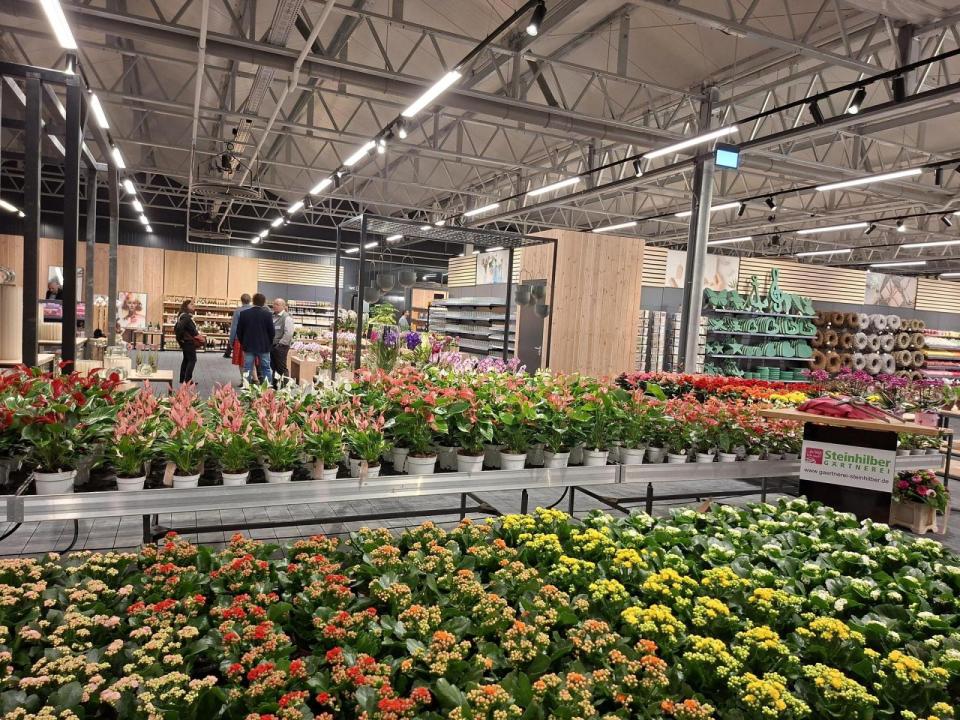 „Kaum zu glauben, dass hier vor zwei Jahren noch eine Kultur mit Christbäumen stand“, erinnerte Ludwig Steinhilber bei der Begrüßung der gut 250 geladenen Gäste im neuen Gartenmarkt. Der Markt bietet 4800 Quadratmeter Verkaufsfläche für Pflanzen und Gartenzubehör sowie ein Café. Mittlerweile seien 100 Tonnen Stahl verbaut und 20 Kilometer Kabel verlegt worden.