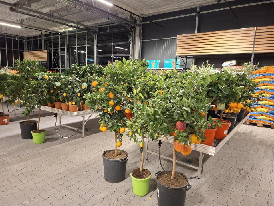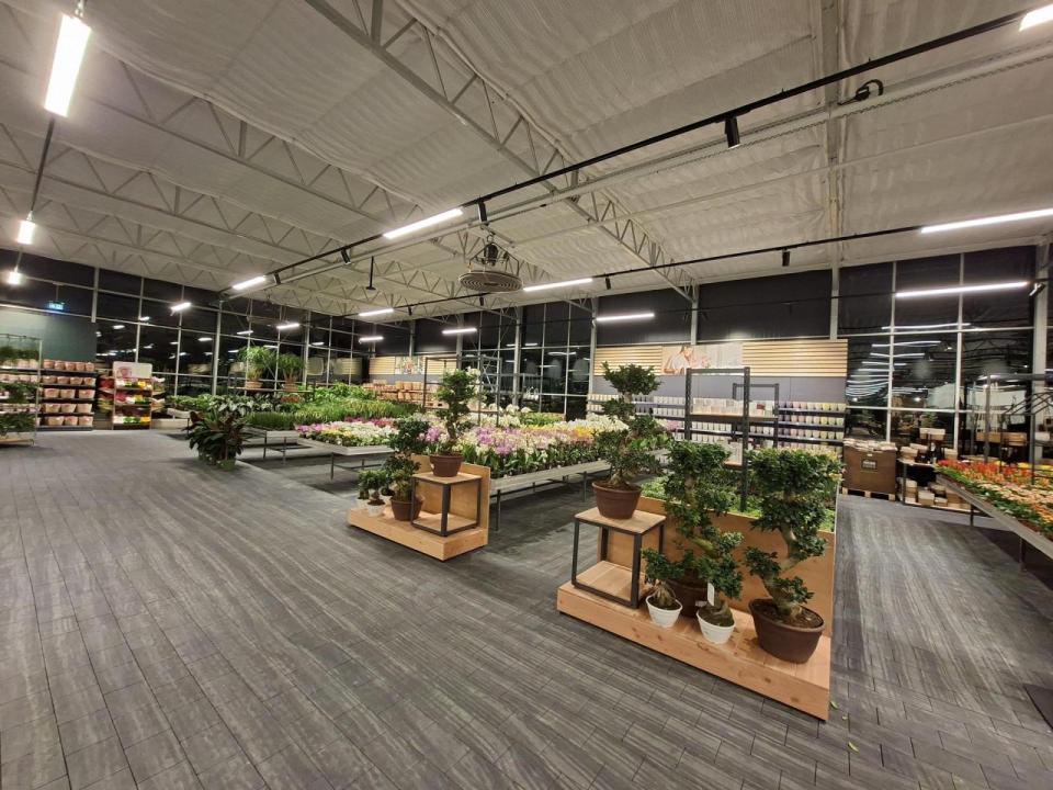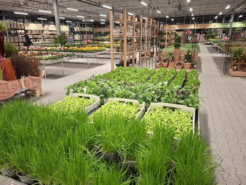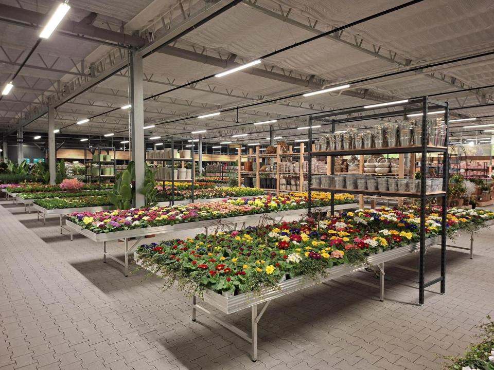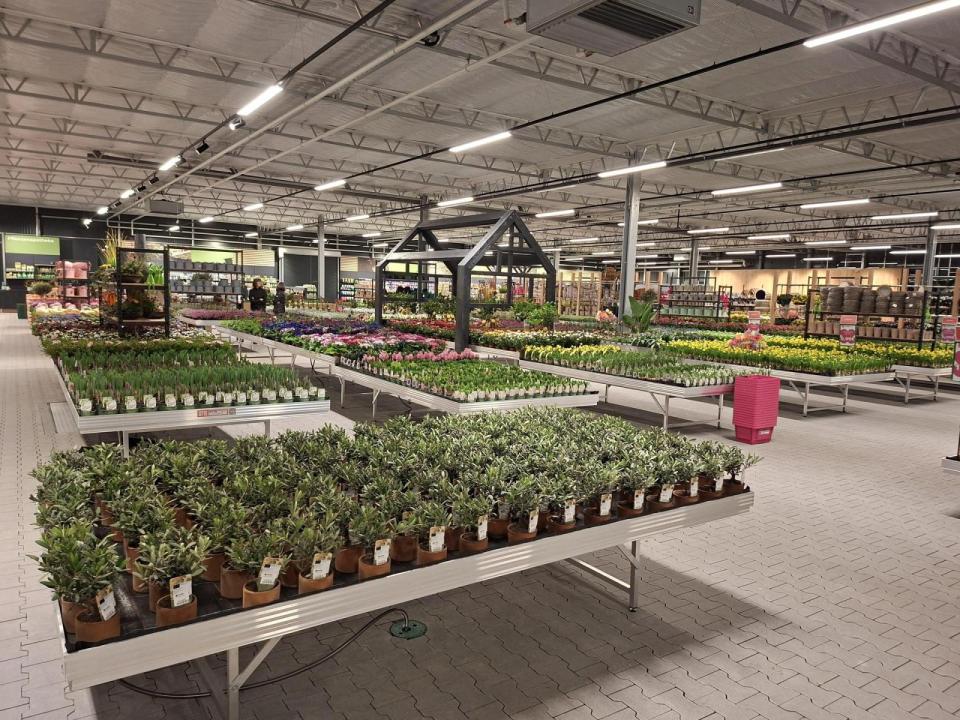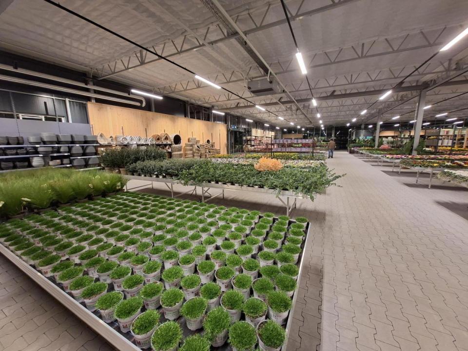 Die Produktionshallen heizen die Betreiber mit Holzpellets, eine Photovoltaikanlage liefert Strom und ein Regenauffangbecken mit einem Fassungsvermögen von zwei Millionen Litern sorgt für die Bewässerung. In nur 6 Monaten Bauzeit entstand nun der neue Gartenmarkt nebenan.