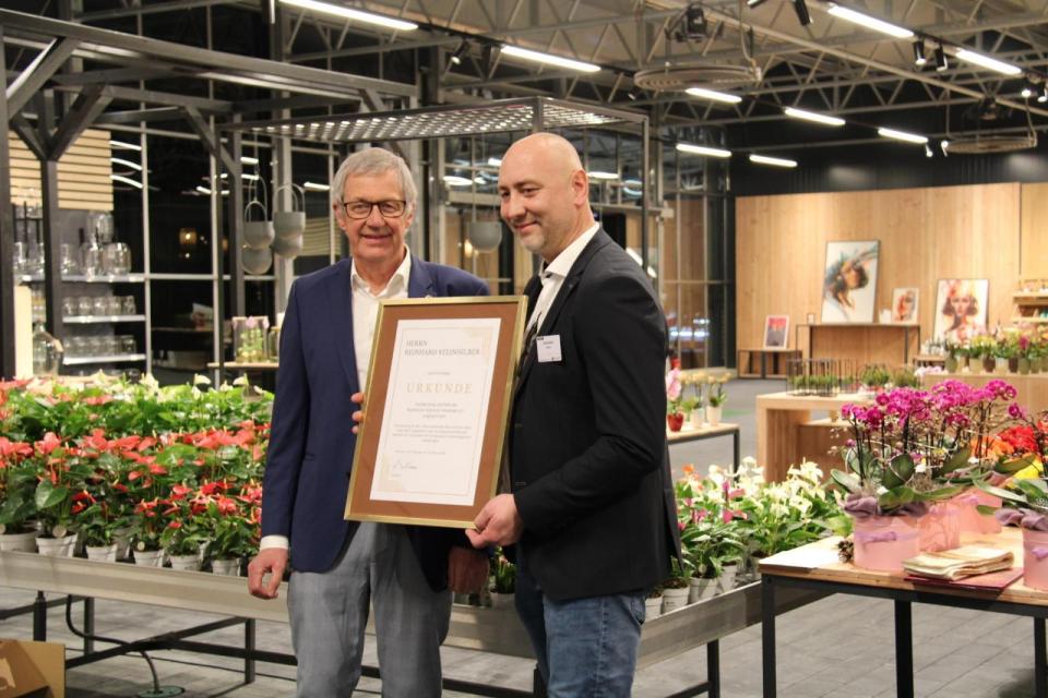 Hermann Berchtenbreiter, der Präsident des Bayerischen Gärtnereiverbands (BGV), zeigte sich stolz darauf, solche Gärtner im Verband zu haben, die in schwierigen Zeiten nach vorne schauen. Er überreichte Reinhard Steinhilber, dem Vorsitzenden der Landesfachgruppe Einzelhandelsgärtnereien, eine Urkunde. Darin spricht der BGV ihm seine Hochachtung für seinen unternehmerischen Mut und seinen Dank für das Engagement in der Solidargemeinschaft aus. Diakon Theo Maget segnete die neuen Räume kirchlich.
