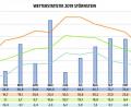 Die höchste Temperatur wurde am 21. August mit 34,1 Grad Celsius gemessen. Die tiefste Temperatur erreichte der Winter vor jetzt schon über einem Jahr am 2. Januar mit -8,3 Grad. Auch im April und im Dezember fiel das Thermometer jeweils noch einmal auf 7,2 Grad. Insgesamt gab es 10 Eis- und ebenso viele Tropentage, 41 Sommer- und 105 Frosttage. Frahnow: "Das entspricht in Störnstein erstaunlicherweise ziemlich den Mittelwerten." Ausnahme sind die wenigen Eistage, von denen nicht einmal die Hälfte der im Mittel 22 erreicht wurden. "Jahr für Jahr werden es weniger", wertet das Frahnow als ein Zeichen für die Klimaänderungen.