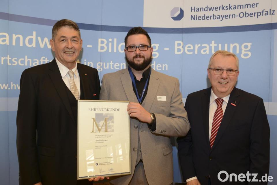 Sie haben in der Meisterprüfung in ihrem jeweiligen Beruf als Beste abgeschnitten. Unter den Geehrten war Tim Trottmannaus Tirschenreuth. Er erhielt die Auszeichnung im Glaser-Handwerk.Georg Haber, Präsident der Handwerkskammer Niederbayern-Oberpfalz, betonte die glänzenden Zukunftsaussichten im Handwerk, die aufgrund der vollen Auslastung besser denn je seien. Mit über 210 000 Beschäftigten und 16 000 Lehrlingen allein in Ostbayern bezeichnete er das Handwerk als "Herzstück des Mittelstands". Der Meistertitel stehe für Qualität. Jürgen Kilger, Hauptgeschäftsführer der Handwerkskammer, betonte, wie wichtig Meister für die Region sind.