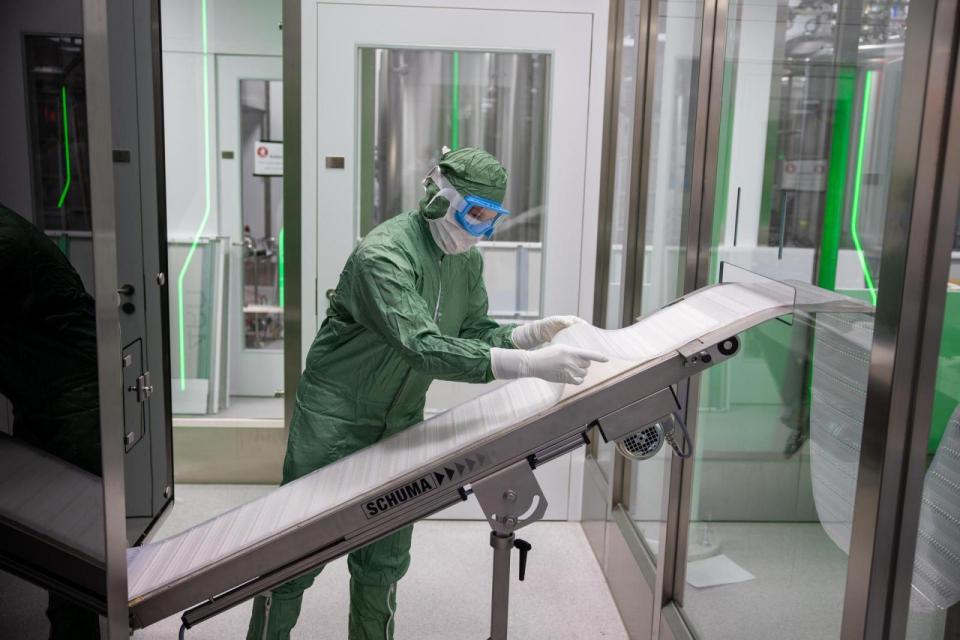 "9 to 5" gibt es bei Kerstin Bruckner nicht. Bereits um 5.45 Uhr beginnt Kerstins Arbeit in der Frühschicht – noch vor eigentlichem Schichtbeginn zieht sie ihren Reinraumanzug an, setzt Haube, Mundschutz auf und zieht Reinraumschuhe über. "Die Anlagen, mit denen ich zu tun habe, stehen in einem zertifizierten Reinraum, der strengste Hygienevorgaben erfüllt." Im Maschinenvorraum erhält sie von ihrem Kollegen eine Übergabe, in der besondere Vorkommnisse oder Maschinenauffälligkeiten besprochen werden.