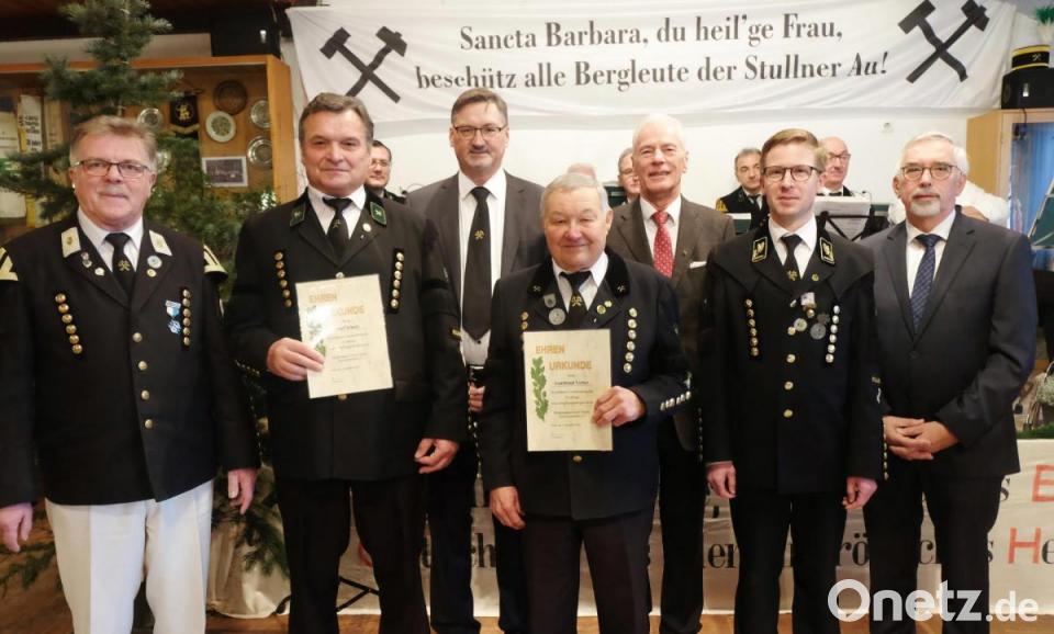 Stellvertretender Landrat Arnold Kimmerl überbrachte die Grüße von Landrat Thomas Ebeling. Der ehemalige Förster erinnerte an den massiven Holzverbrauch im Bergbau und das Roden ganzer Wälder. Aus diesem Grund wurde vor einigen Jahrhunderten der Begriff "nachhaltiges Wirtschaften" geprägt. Die schwierige Arbeit im Bergbau unter Tage schweißte die Kumpel zusammen, merkte Bürgermeister Hans Prechtl (Stulln) an. Ein starker, geselliger Charakter präge daher auch die weltliche Feier. Sein Dank galt allen, die "immer kräftig mit anpacken". Bürgermeister Manfred Rodde (Schwarzenfeld) erinnerte an die Verehrung der heiligen Barbara durch die Bergleute. Stets dankten sie ihrer Schutzpatronin für eine gute Heimkehr von dem nicht ungefährlichen Arbeitsplatz. Beide Bürgermeister überreichten ein Geldgeschenk.