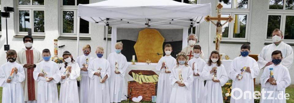 Die Heilige Erstkommunion der Pfarrgemeinde Stulln geht gewiss in die Annalen ein. Für diesen Festtag wurde an der Südseite des Schulgebäudes ein Altartisch mit Zeltdach errichtet. Unter Beachtung der Abstandsregelung in Corona-Zeiten gruppierten sich im geräumigen Oval zahlreiche Sitzgelegenheiten unter den Schatten spendenden Bäumen.