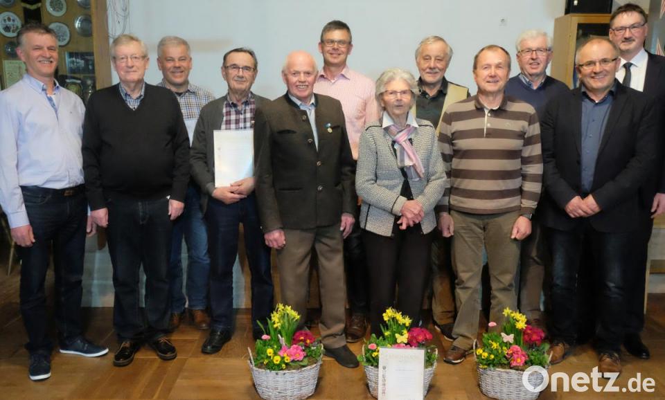 Für die langjährige Mitgliedschaft und Unterstützung zeichneten Bürgermeister Hans Prechtl und Vorsitzender Hubert Obermeier Mitglieder aus. 25 Jahre (Urkunde, Ehrennadel in Silber, Frühlingskorb): Rudolf Groß, Robert Süß, Richard Edenharter und Johann Irlbacher; 40 Jahre (Urkunde, Ehrennadel in Gold, Frühlingskorb) Heinrich Gürtler, Johann Klar, Heinz Prokisch, Wolfgang Rübe, Franziska Scheuerer, Hannelore Schröder, Werner Seuß und Maria Hofmann; 50 Jahre (Urkunde, Ehrennadel mit Kranz, Geschenk - und Blumenkorb): Johann Bodensteiner; 60 Jahre (Urkunde, Ehrennadel am Band, Geschenk-und Blumenkorb): Konrad Obermeier.