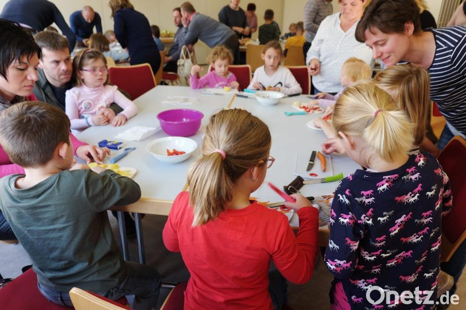 Mehr als 30 Mädchen und Buben im Kindergarten- und Grundschulalter, auch von Eltern begleitet, bauten gemeinsam mit Gabi Attenberger, Theresa Eules, Judith Lobinger und Silvia Schönberger einen einfachen Altar auf. Die Kleinen legten ein Kreuz auf ein ausgebreitetes Tuch, entzündeten eine Kerze und stellten Schalen mit Gemüse, Samen, Körnern und Nüssen rundherum dazu. Die Kinder benannten die Getreidesorten und gingen auf die Verwendung ein. Silvia Schönberger trug aus dem Buch „Frederick und seine Mäusefreunde“ eine fantasievolle Geschichte vor. Das Organisationsteam hatte schon das Tellergericht vorbereitet. Das geschnippelte Gemüse der Kinder verfeinerte die Speise noch. Auch Gemeindereferent Markus Seefeld und Bürgermeister Hans Prechtl mit Gattin Irmgard ließen sich die Erntedanksuppe schmecken.