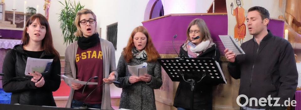 Gegen 17 Uhr setzte festliches Glockengeläut ein klares Signal. Gemeindereferent Markus Seefeld begrüßte die Besucher und integrierte die auf die Inhalte der Lieder abgestimmte Bibeltexte. Singend mit "Christus, dein Licht" zogen die Akteure, in der Rechten ein brennendes Teelicht und begleitet von Anni Pröls am E-Piano, durch den Mittelgang zu den Stufen des Hauptaltars, stellen die Lichter ab und positionieren sich getrennt neben den Seitenaltären.