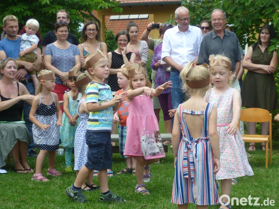 Kindergartenleiterin Bettina Schön freute sich mit ihren Kolleginnen über die vielen Gäste und die Anwesenheit von Diakon Dieter Gerstacker und Kirchenpfleger Konrad Huber als Vertreter der Trägerschaft. Dank galt den vielen Helfern, unter anderem der Landjugend Süß, für die Unterstützung beim Zeltaufbau.