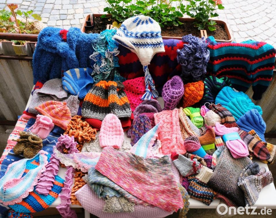 Ergänzt um eigene Ideen entstand aus buntem Garn Leichtes und Luftiges, Schickes und Fröhliches: "Ein Stück Glück für die Kinder", hieß die Devise. „Diese Einstellung machte doppelt Spaß“, stellte Initiatorin Ingrid Meyer schon zur „Halbzeit“ fest. Zur Kuchen- und Kaffeepause war der Gabentisch bereits reich gedeckt. Die kleinen wollenen Kunstwerke luden zum Hinschauen ein: Ein ganzer Tisch voll Lebensfreude und guter Laune stand im Freiluft-Atelier. Extraweiche Kinderpullover, süße Babyschuhe, bunte Söckchen, farbenfrohe Kleidchen, gehäkelte Mützen und flauschige Schals stapelten sich darauf.