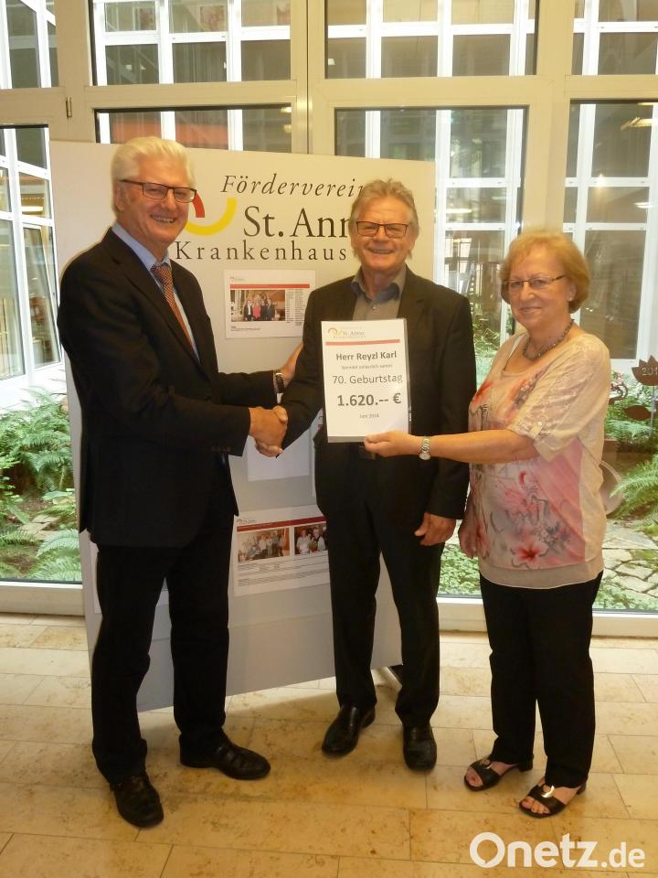 (exb) Im kleinen Kreis mit Verwandten und Freunden feierte Karl Reyzl, ehemals Geschäftsführer des Rohrwerks-Maxhütte 70. Geburtstag. Statt Geschenken kam eine Spendenbox zum Einsatz. Diese erbrachte das respektable Ergebnis von 1620 Euro. Den Betrag übergab Reyzl an den Förderverein des St.-Anna-Krankenhauses Sulzbach-Rosenberg übergeben.