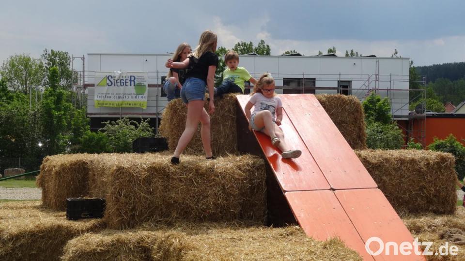 An anderer Stelle durfte gebaggert werden, Kinder vergnügten sich an einer Stroh-Hüpfburg, eine Jura-Werkstätten-Tanzgruppe formierte sich zum Maitanz. Eindruck machte eine Hundestaffel des BRK. Die Vierbeiner zeigten ihr Können unbeeindruckt vom quirligen Festgetümmel um sie herum. Ein Teilbereich der Jura-Werkstätten ist Jura-Grün, zuständig für Garten- und Landschaftsbau, Grünflächenpflege und Brennholzfertigung.