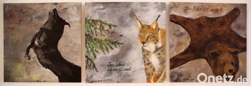 Die Beiträge der Künstler zur Weihnachtsausstellung offenbaren das breite Spektrum der Gruppe: Während Werner Häusler die Frage "Gehören Bär, Luchs und Wolf zu Bayern?" künstlerisch umsetzt, präsentiert Uschi Brauner neben den bereits bekannten "Oberpfälzer Grünschnäbeln" neue "tierische" Keramik-Objekte, einen Schweinekopf, einen Schafskopf und eine Bestie, wie Jagdtrophäen an der Wand exponiert, die von Adventskröten begleitet werden.