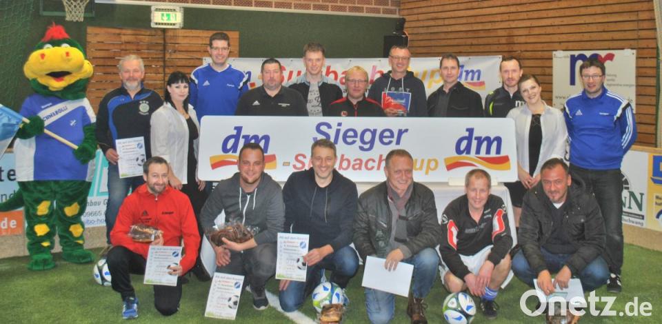 Die weitere Reihenfolge lautete: Sportfreunde Ursulapoppenricht, SV Kauerhof, DJK Ammerthal, SG Schlicht/Sorghof, SG Illschwang/Schwend und SK Fürnried. Im Bild die Spielführer der Mannschaften des Altherren-Turniers mit der Geschäftsleitung des dm-Drogeriemarkts Sulzbach und Mitgliedern des Organisationsteams des SV Illschwang bei der Siegerehrung in der Krötensee-Halle.
