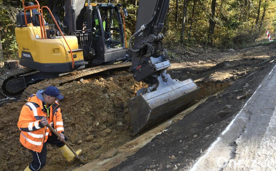 Erneuerung und Erhalt der Bundesstraße sind die Ziele der Maßnahme, die seit Montag dort läuft: Rund 2,5 Kilometer werden bis Ende November betroffen sein. Zunächst baut die ausführende Firma Huber aus Rötz aber eine Linksabbiegespur an der unfallträchtigen Abzweigung nach Grund. Die Fahrbahn wird um 3,5 Meter verbreitert, der nördlich angrenzende Streifen gemeinsam mit dem Grundeigentümer als höhengleiche Fläche gestaltet. Damit entfällt die Notwendigkeit einer Stützmauer. Zeitgleich müssen auch Telekommunikations-Einrichtungen sprich dicke Glasfaserkabel aus dem Baubereich hinaus verlegt werden.