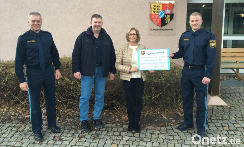 Stolze 2 500 Euro übergaben kurz vor Weihnachten der Leiter des 73. Ausbildungsseminars am Bereitschaftspolizei-Standort Sulzbach-Rosenberg, Polizeioberrat Thomas Scherer, und Polizeimeisteranwärter Raphael Aschenbrenner, einer der Vertrauenspersonen der Polizisten in Ausbildung, an die Selbsthilfegruppe krebskranker Kinder Amberg-Sulzbach. Die Vorsitzende Petra Waldhauser und ihr Stellvertreter Marco Kind nahmen die Spende dankbar entgegen.