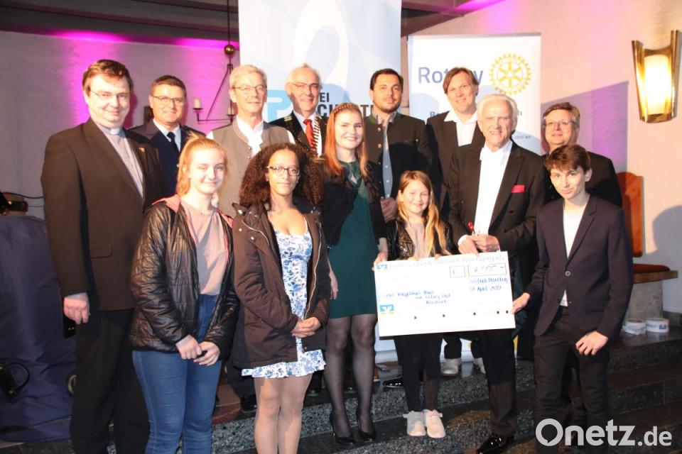 Organisiert hatten das Konzert der Rotary Club Auerbach und die Raiffeisenbank zugunsten des Ernst-Naegelsbach-Hauses (ENH). Deshalb übergaben Rotarier Hans Renner und Club-Präsident Reinald Agethen den Kindern, die im Waisenhaus leben, einen Spendenscheck über 7000 Euro. Zu dieser Summe haben nicht nur die zahllosen Musikfreunde beigetragen, die das Polizeiorchester hören wollten. Ludwig Hetzenegger, der Investor, der derzeit das ENH saniert, hat noch einen runden Tausender daraufgelegt.