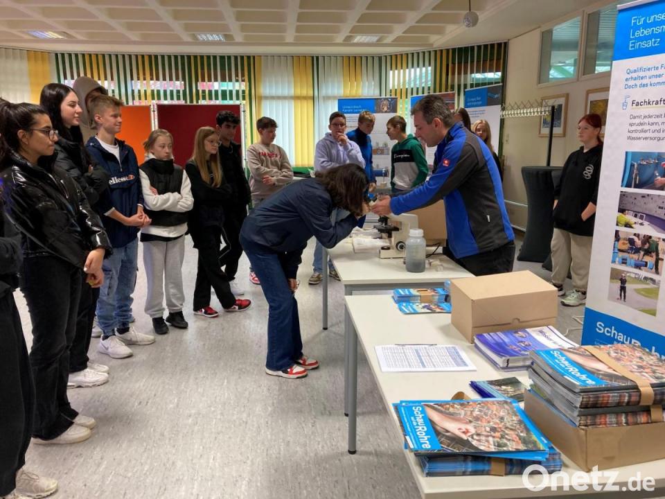 Beim Mikroskopieren konnten die Klassen im Klärschlamm einige der Mitarbeiter auf der Kläranlage in vielfacher Vergrößerung sehen und ihnen bei der Arbeit zuschauen. Die Vielseitigkeit der beruflichen Praxis erstaunte die Schüler. Sie bekamen Aussicht auf Praktika in den Betrieben und Zweckverbänden.