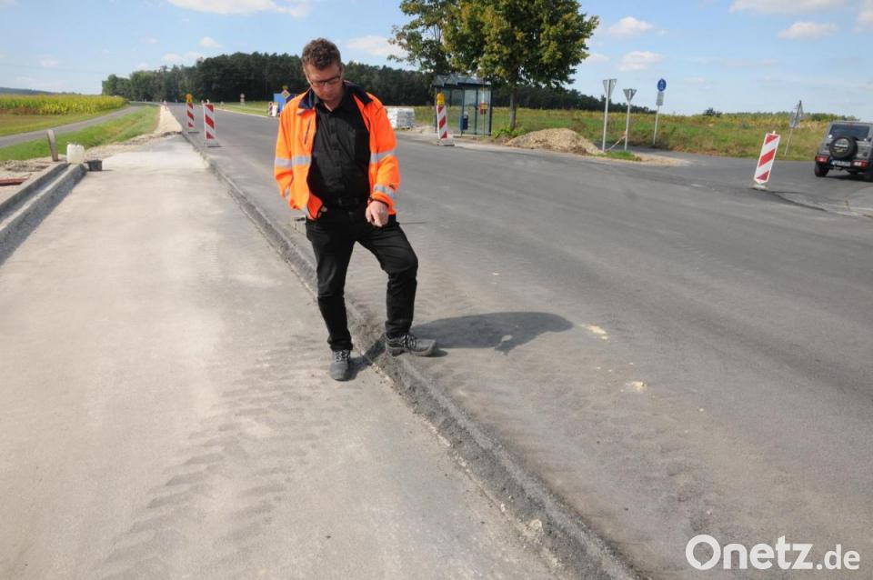 Bei einem Besuch auf dem Abschnitt erläutert der Abteilungsleiter die Restarbeiten: "Sämtliche Einfahrten müssen angeglichen werden, denn die neue Straße ist durchschnittlich etwa 14 Zentimeter höher." Auch Schutzplanken werden viele Meter gesetzt, am Ende folgen Fahrbahnmarkierungen.