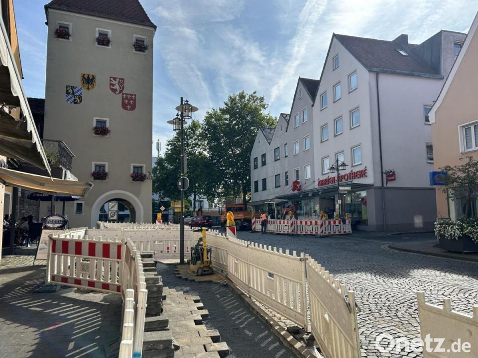 Baustelle sorgt für Verkehrssperre am Stadtturm in Sulzbach-Rosenberg