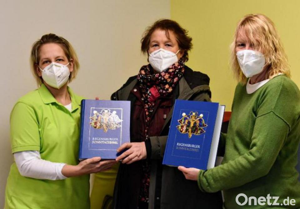 Umso erfreuter reagierten die Verantwortlichen und das Personal der Ökumenischen Sozialstation und der Ökumenischen Tagespflege auf einen Besuch von Anita Kerscher von der Fachberatung Ambulante Pflege und Tagespflege des Diözesan-Caritasverbandes Regensburg. Im Auftrag des Bischofs Rudolf Voderholzer überreichte sie für jede Einrichtung eine Regensburger Sonntagsbibel. "Dass es sich hier nicht nur um ein allgemeines Geschenk handelt, wurde allen deutlich, als sie die persönliche, handschriftliche Widmung für die jeweilige Einrichtung auf den Vorsatzblättern lasen", fügt die Presseinfo hinzu. Geschäftsführer Günther Koller dankte Anita Kerscher und bat sie, dies auch an den Bischof weiterzugeben.