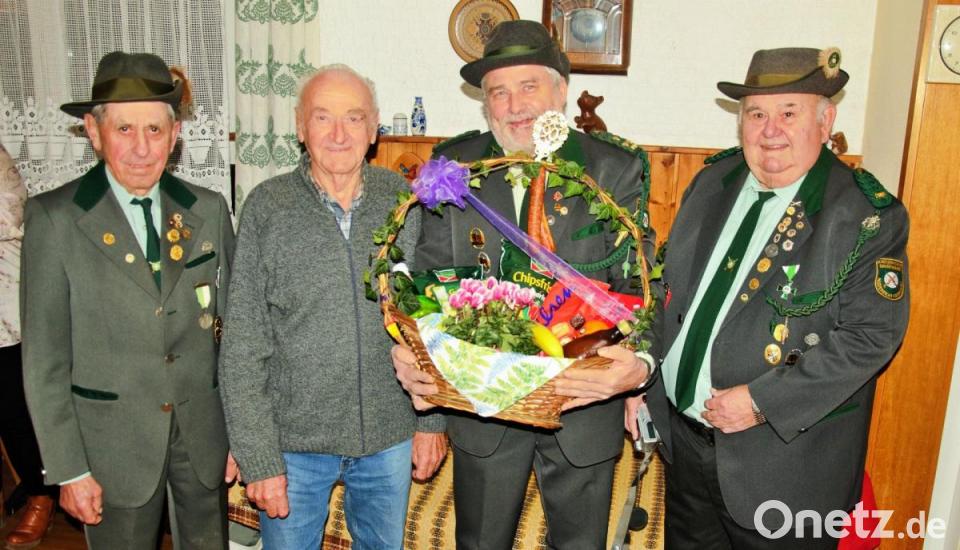 Im Kreise seiner Familie, Verwandten und Freunde feierte Georg Wiesmet aus Prangershof seinen 90. Geburtstag. Der Jubilar war Zeit seines Lebens mit Leidenschaft in der Natur unterwegs. Neben seiner Arbeit in der Maxhütte führte er mit seiner Frau Rita ein landwirtschaftliches Anwesen und seine kleine Imkerei. Auch heute noch weiß der "Schore", was draußen in Feld und Flur los ist und versorgt seine Freunde nach wie vor mit Honig. Das Geburtstagskind ist auch schon fast 50 Jahre beim Bruderbund Niederricht-Fromberg, was für Schützenmeister Werner Grünthaler, Manfred Pirner und Willi Aures der Anlass war, im Namen des Vereins mit einem Geschenkkorb zu gratulieren.
