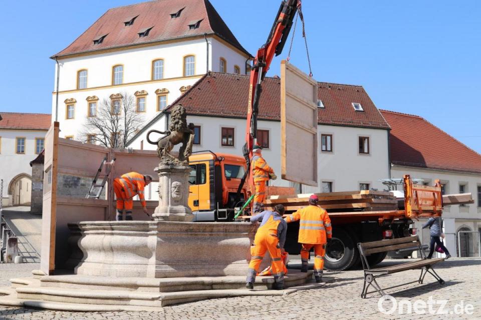 Jetzt scheint der Winter wirklich vorbei zu sein: Der Sulzbach-Rosenberger Bauhof vertraut auf wärmere Tage und packt den Löwenbrunnen aus. Das Holzhäuschen, das die historische Sandsteinskulptur vor Frost schützte, wird bis zum nächsten Winter eingelagert. Das auseinandergebaute Dach liegt schon im Depot. Jetzt sind die Wände an der Reihe. Stück für Stück werden sie losgeschraubt und mit dem Kran sorgfältig auf den Lkw gelegt. Bald tanzen wieder funkelnde Wassertropfen um bunte Blumen: Es ist Frühling!