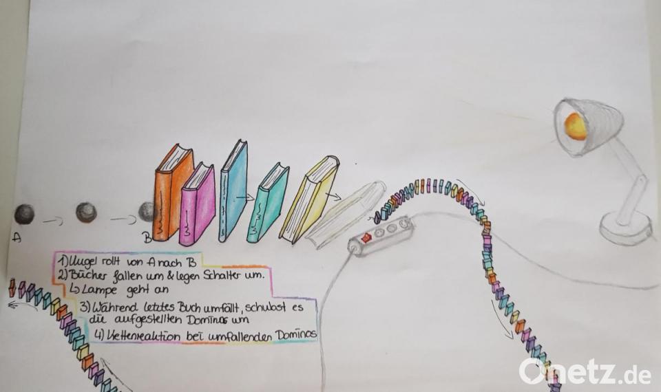 So ließ Oberstudienrätin Kerstin Fiedler ihre Schüler paarweise am Telefon Interviews zum Thema "What job would suit you best?" führen; danach hielt jeder einen Two-Minute-Talk über seinen Partner, den er anschließend als Audiodatei in Mebis hochlud. "Somit konnten alle Schüler alle Präsentationen anhören und kommentieren", erklärt sie. Im Bereich der Fremdsprachen wurden das Hör-Verstehen und Hör-Seh-Verstehen verstärkt durch den Einsatz von freien online verfügbaren Lernmaterialien trainiert (mit Aufgaben zu Audios und Videos des British Council oder des Freilichtmuseums Plimoth Plantation in Massachusetts). Aber auch zur Aufrechterhaltung einer lebendigen Lehrer-Schüler-Kommunikation wurden Mittel und Wege gefunden: Neben E-Mails boten hier Livestream, Audiochats und Videokonferenzen neue Möglichkeiten, übrigens auch über die anfangs viel kritisierte Mebis-Plattform. Außerordentlich unterhaltsam für ihre Schüler verlief der Physikunterricht von Studienrätin Katharina Franke: In ihrem Unterricht waren sie aufgefordert, eine "Bleib-daheim-Maschine" zu konstruieren. Der offizielle Name ist eigentlich "Rube-Goldberg-Maschine" - eine "Unsinnsmaschine", die eine bestimmte Aufgabe in vielen unsinnigen extra komplizierten Einzelschritten ausführt. Sie hat nur den Sinn, den Zuschauer zum Lachen zu bringen.
