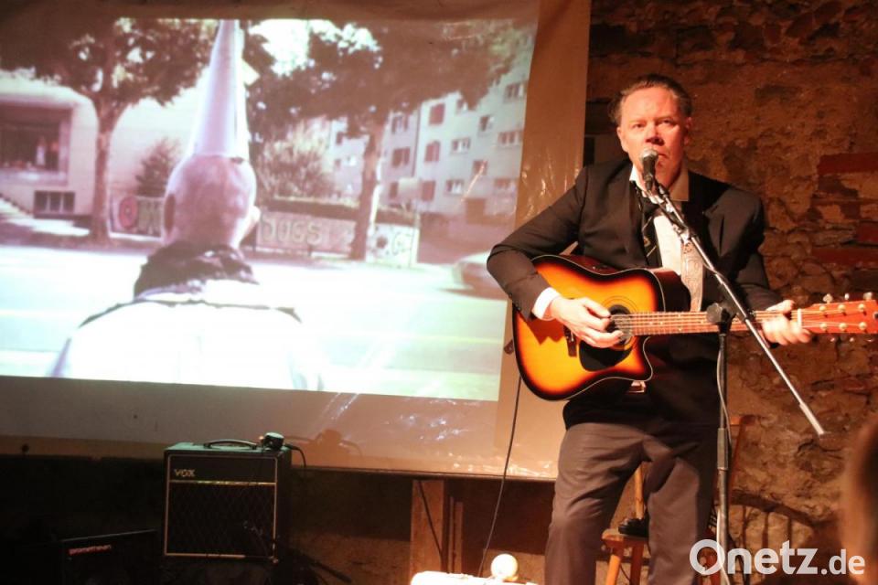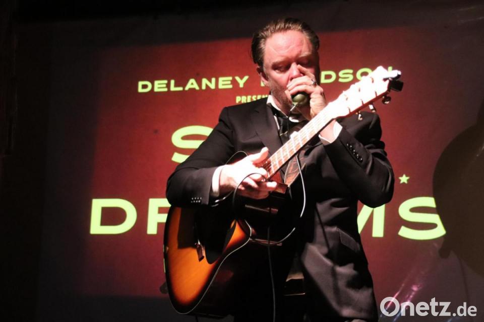 Delaney Davidson ist nicht gerade ein Sunnyboy. Gleich am Anfang der Show erklärt er, dass Lächeln ihm nicht liegt; deshalb wolle er das sofort erledigen. So bleckte er dann für eine Minute die Zähne, zog die Mundwinkel Richtung Ohren - und das war es dann mit der Heiterkeit. Den Rest des Abends zeigte er die ihm entsprechende grimmige Miene, die auch bestens zu seinen finsteren Filmen und der düsteren Musik passt.