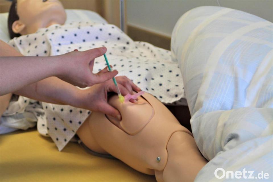 An der computergesteuerten Pflegepuppe können Situationen des Pflegealltags simuliert sowie notwendige Pflegemaßnahmen trainiert werden. Mittels Tablet kann die Lehrkraft Pflegesituationen simulieren und auch kurzfristige Veränderungen vornehmen, die ein rasches Reagieren der Auszubildenden erfordern. Das Tablet erstellt dann zu den ergriffenen Pflegemaßnahmen ein Protokoll, das im Nachgang mit den Auszubildenden durchgesprochen wird.