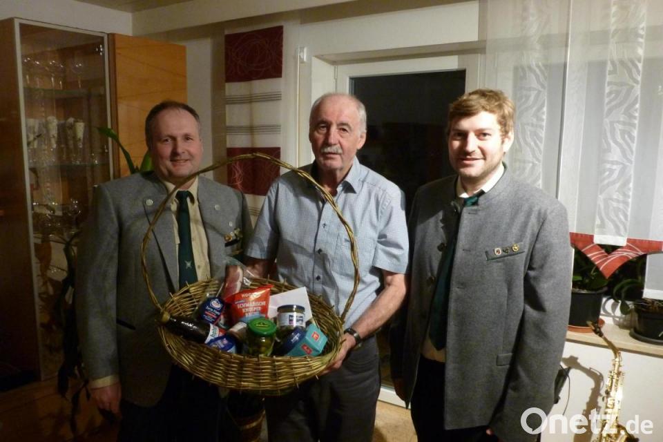Corona macht vielen Geburtstagskindern einen Strich durch die Rechnung. Auch Richard Wagner, der Ehrenschützenmeister von Eichenlaub Großenfalz, musste darauf verzichten, seinen 70. Geburtstag im großen Rahmen zu feiern. Dessen ungeachtet ließ es sich Schützenmeister Martin Pickel nicht nehmen, zusammen mit seinem Stellvertreter Alexander Rösch dem Jubilar zu gratulieren und einen Geschenkkorb zu überbringen. Richard Wagner ist seit über 55 Jahren Mitglied des Vereins und vertrat ihn 20 Jahre als Schützenmeister.