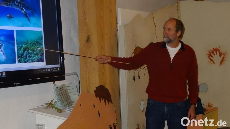 Zum Teil hoch wissenschaftlich zeigte der Diplom-Geologe die Entwicklung des Lebens auf der Erde auf, hatte Bilder, Grafiken und auch Stücke von Sandstein, dunklem Ton und Posidonischem Schiefer mitgebracht: Klimazeugen, die Aufschluss geben über Zeiten und klimatische Einflüsse ihrer Entstehung. So habe es in der Carbonzeit der Erde eine große Eiszeit gegeben, in der 90 Prozent aller Tierarten ausgestorben sind, in der Kreidezeit habe ein Meteoriteneinschlag das Ende der Dinosaurier bedeutet.