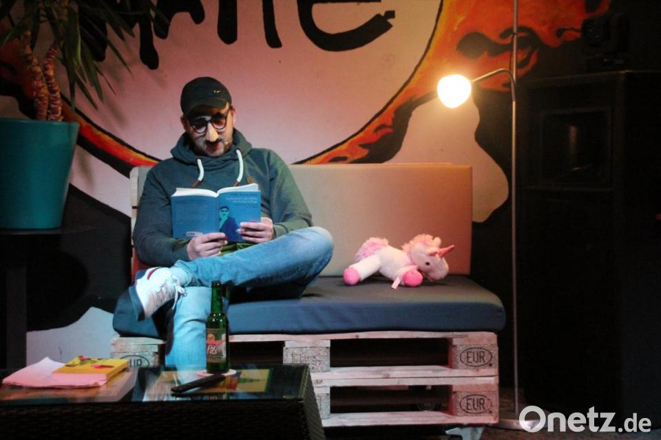Die Frage, ob Schinkenspicker Wurst in Dartpfeilform ist, machte dabei nur den Anfang eines zweistündigen Feuerwerks aus verdrehter Satzstellung und Wortumformungen der besonderen Art. Willy Nachdenklich hatte für das begeisterte Publikum neue Geschichten und alte Klassiker sowie weltverändernde "Fun Facts" im Gepäck. Auch bekannte Figuren seiner Internetseite waren dabei. Den Anfang machte AfD-Anhängerin Gisela Stöcklmeier, die sich in den Flüchtling Carlos verliebt. Die AfD nennt er dabei liebevoll eine "neoliberale Wixerpartei". Gisela schafft sich schließlich einen Hund, einen "Golden Receiver" an, den sie, aus offensichtlichen Gründen, "Bello" nennt.
