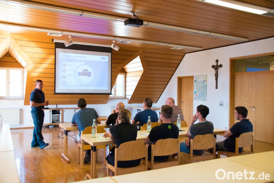 Neben der praktischen Ausbildung gab es auch eine Theorie-Schulung. Themen waren Gefahren im Innenangriff, der Umgang mit dem Strahlrohr und das richtige Ablegen der Einsatzkleidung, um nicht sich selbst und andere in Gefahr zu bringen ("Kontaminationsverschleppung").