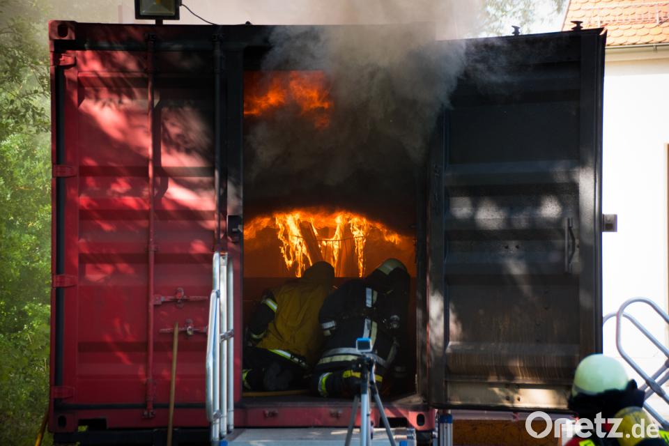 Mithilfe des Brandcontainers können die Aktiven unter Atemschutz lernen, Brandrauch richtig zu deuten und sich auf mögliche Szenarien im "Innenangriff", also beim Einsatz in Gebäuden, vorzubereiten. Eine wirklich heiße Angelegenheit: Beim praktischen Training werden Rauchgasdurchzündungen bei Temperaturen zwischen 800 bis 900 Grad simuliert. Und die Teilnehmer trainieren, wie sie bei einem solchen Phänomen reagieren müssen.
