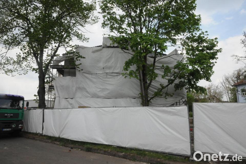 Das Fundament musste an der Südseite auf zwei Meter unterfangen werden. Jetzt werden die weißen Planen bald verschwinden, die dem Gebäude einen Christo-mäßigen Anblick verschafften. Nach der Gestaltung des Außenbereichs hat Rosenberg dann ein modernes Funktionsgebäude mehr. Die Zeiten des Leerstands sind hier definitiv vorbei.