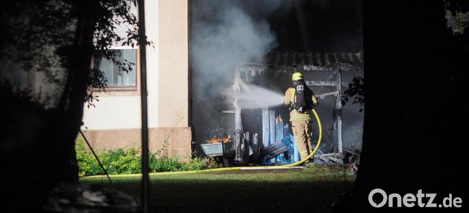 Die herbeieilenden Feuerwehren aus Rosenberg, Sulzbach und Siebeneichen konnten jedoch nicht mehr verhindern, dass die Gartenhütte komplett ausbrannte und die darin befindlichen Gegenstände vernichtet wurden. Mehrere Gasflaschen, die in der Hütte untergestellt waren, erschwerten die Löscharbeiten. Das Feuer griff im Weiteren auf den Dachstuhl des Wohnhauses über, sowie auf eine Wäschespinne, einen Unterstellstand und die Hausfassade des Nachbaranwesens. Zur weiteren Brandbekämpfung musste dann das Dach des betroffenen Wohnhauses durch die Feuerwehr geöffnet werden, um weitere Schäden zu verhindern.