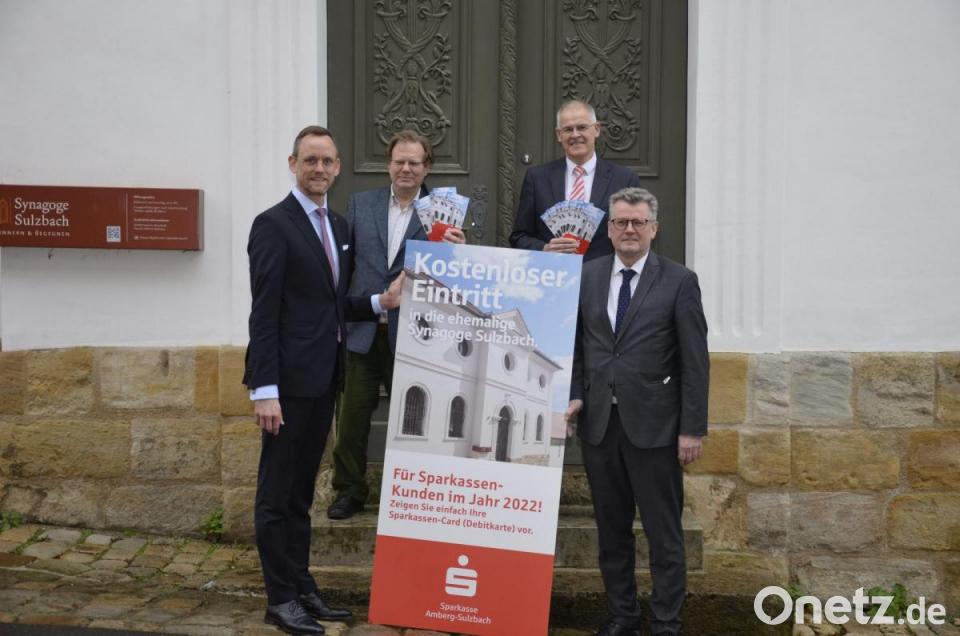Die Sparkasse Amberg-Sulzbach und das Museum "Ehemalige Synagoge" in Sulzbach-Rosenberg haben einen Kooperationsvertrag geschlossen. Er ermöglicht allen Kundinnen und Kunden mit einer Sparkassen-Card einen kostenlosen Besuch, verkünden für die Sparkasse Vorstandsvorsitzender Thomas Pickel und Vorstandsmitglied Alexander Düssil, für die Stadt Bürgermeister Michael Göth und für die Synagoge Museumsleiter Johannes Hartmann in einer Pressemitteilung. Die Kooperation gilt ab sofort bis zum 31. Dezember 2022, heißt es darin.