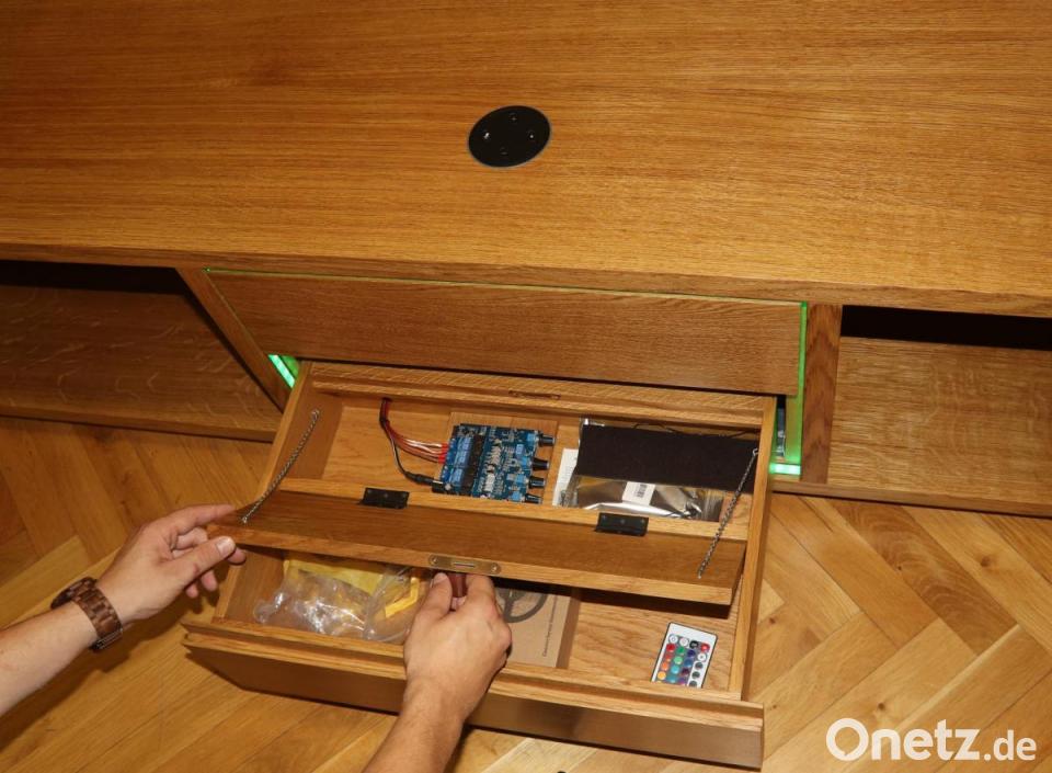 Den besten Abschluss erzielte Alexander Wenkmann von der Schreinerei Hans-Jürgen Mayer. Er wurde im Wettbewerb "Die gute Form" ausgezeichnet. Wenkmann hatte ein Smarthome-Möbel entwickelt; sozusagen den ehrwürdigen Musikschrank der 60er-Jahre in das digitale Zeitalter transferiert. Beleuchtung und Musikauswahl sind sprachgesteuert. Wenkmann sprach Dankesworte im Namen der Prüflinge.
