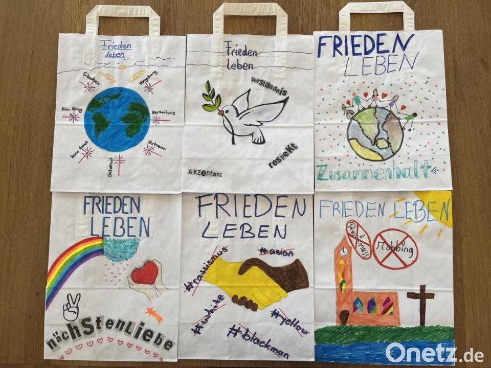 "Was trage ich zu einer friedlichen Welt bei? Und wie sieht eine friedliche Welt aus?": Anstöße, über diese Fragen nachzudenken, ins Gespräch und schließlich ins konkrete Tun zu kommen, wollte das Projekt „Frieden leben“ im Religionsunterricht am Herzog-Christian-August-Gymnasium geben. 150 Mädchen und Jungen aus allen Jahrgangsstufen nahmen daran teil und gestalteten Papiertüten mit vielen Ideen zu diesem Thema.